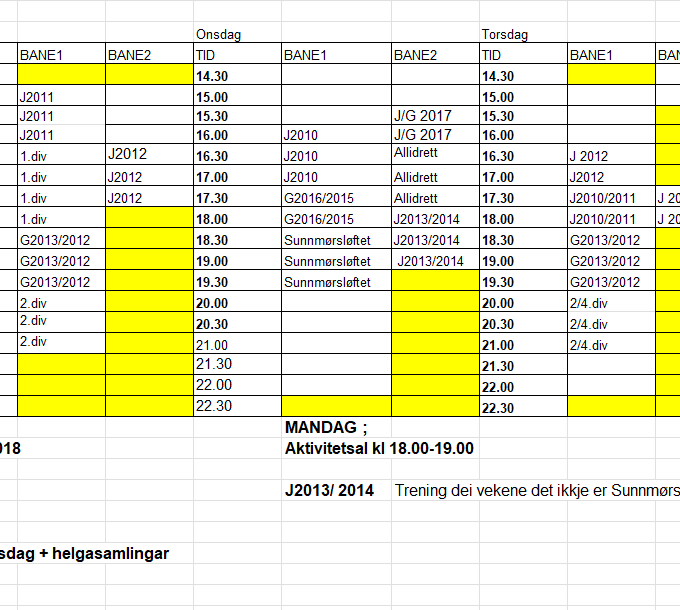 Treningstider 25/26